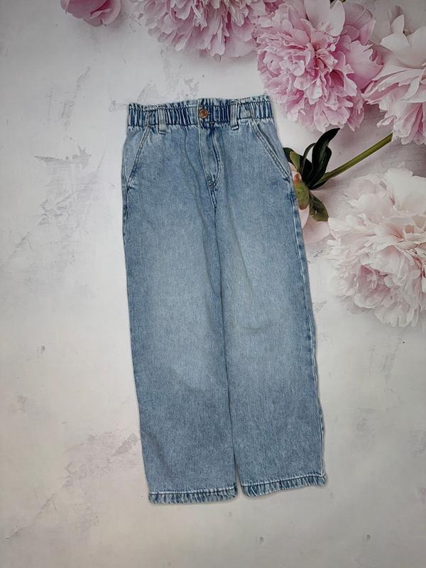 Джинсы свободного кроя На талии резинка, высокая посадка 🏷️H&M 6-7 лет/122 Длина 72. Шаг 49. ПОТ 24+