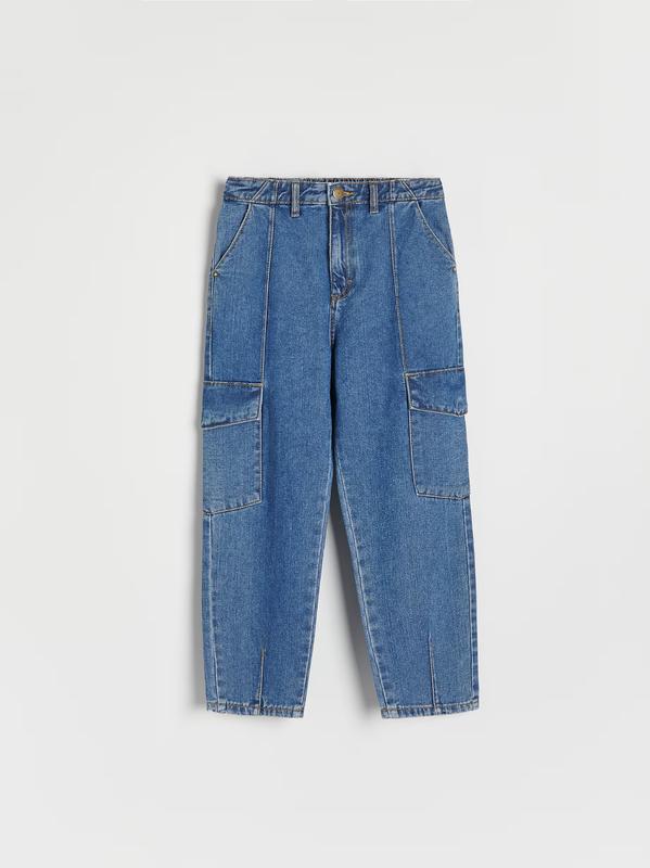 Джинсы типа карго. Стильные, удобные. Состояние новой вещи. В поясе хорошая резинка. Размер 122, можно с 116.