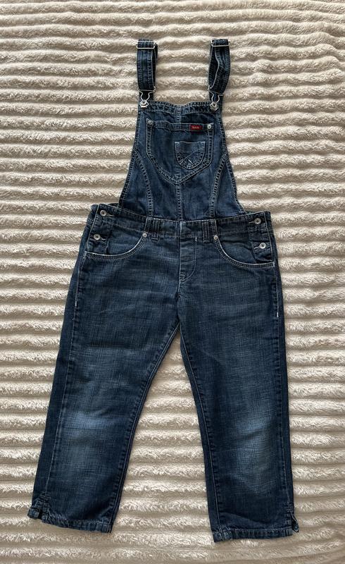 Джинсовый комбинезон Замеры : бедра 44 см, длина от груди ( места застежки бретелей) 90, шаг 46 Стан - идеальный