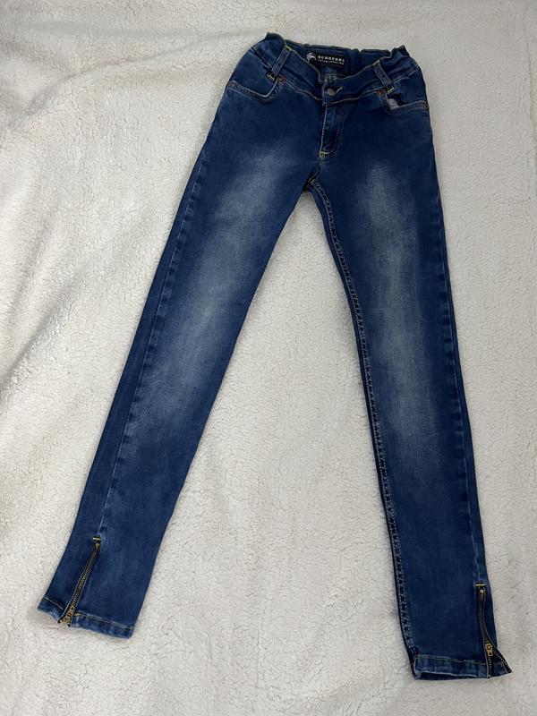 Джинсы темно синие, снизу замочек на брюках На талии есть внутренняя резинка регулятор Замеры: длина 85, талия 23-30, бедра 33 - тянутся