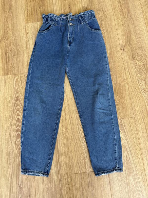 Джинсы в хорошем состоянии, одевали 3-4 раза. Пояс на резинке, без утяжки. Длина по внешнему шву 97 см, по внутреннему шву 65 см, полуобхват бедер 46 см, пояс полуобхват 34. По наборке размер указан на 15 лет.