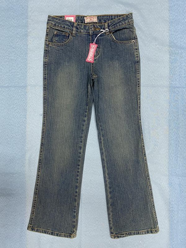 Привезені з США! Джинси для дівчинки американського бренду Steve & Barry’s , мод, Stretch Bootleg , виробництво Свазіленд ( Есватіні ) ! Матеріал ( щільний, стрейчевий ) : 98% бавовна , 2% спандекс ! В талії регулюється гумка-затяжка , фіксується ґудзиком , фурнітура з логотипом бренду ! Розмір: 10 : ширина ( в талії ) - 34 см, ширина ( в стегнах ) - 39 см , заг. довжина - 87 см , довжина крокова - 66 см , посадка ( з переду ) - 20 см, ширина ( низ ) - 20 см .