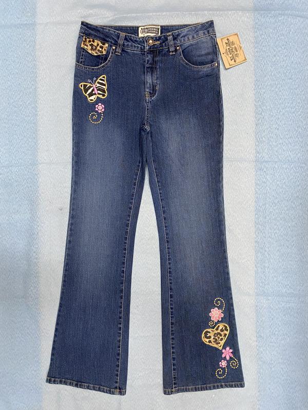 Привезені з США! Джинси для дівчинки американського бренду Route 66 , виробництво Бангладеш ! Матеріал ( щільний , стрейчевий ) : 98% бавовна , 2% спандекс ! Фурнітура зі стразами з логотипом бренду , з вишивкою , в поясі гумові затяжки ! Розмір: 14 ( зріст 147 - 152 см ) , ( вага 38 - 44 кг ) : ширина ( в талії ) - 34 см, ширина ( в стегнах ) - 39 см , заг. довжина - 95 см , довжина крокова - 73 см , посадка ( з переду ) - 23 см , ширина ( низ ) - 22 см .