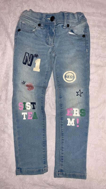 Джинсы на девочку Benetton,бирка срезанная, но где-то 4-5 лет, замеры да Имеют нюанс,пятки сзади у карманов,вывести не пробовала.Цена 100 гр