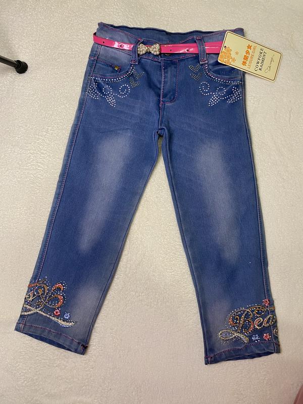 Турецкие джинсы с поясом и красивым принтом для маленьких красавиц. Размер 92 и 98, замеры снаряжения