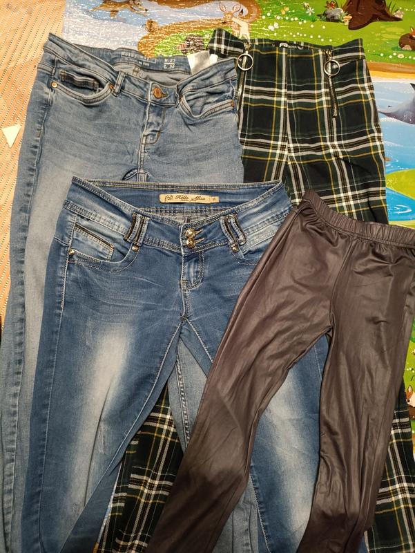 Две пары джинсов(27,38),брюки в клеточку (xxs) и лосины на девочку 11-13 лет +/- .Состояние хорошее (брюки одевались вообще 1 раз). Пересылаю.Продаю лотом(всё сразу)