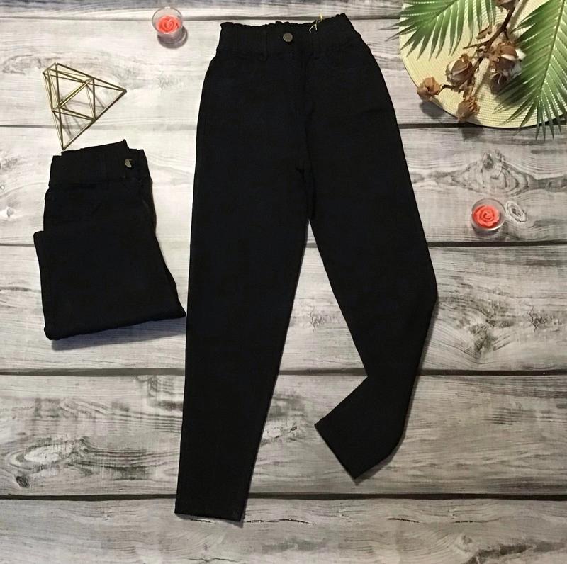 В наличии! Джинси МОМ Брюки с в тепле, на легкой байке. Застегивается на пуговицу и молнию. Есть карманы. Пояс тянеться. Ткань - джинс со стрейчем на байке. Цвет - черный. Замеры: 21(134)-длина - 83см, шаг - 59см, пояс - 26см. 22(140)-длина - 85см, шаг - 60см, пояс - 27см. 23(146)-длина - 87см, шаг - 61см, пояс - 27см.