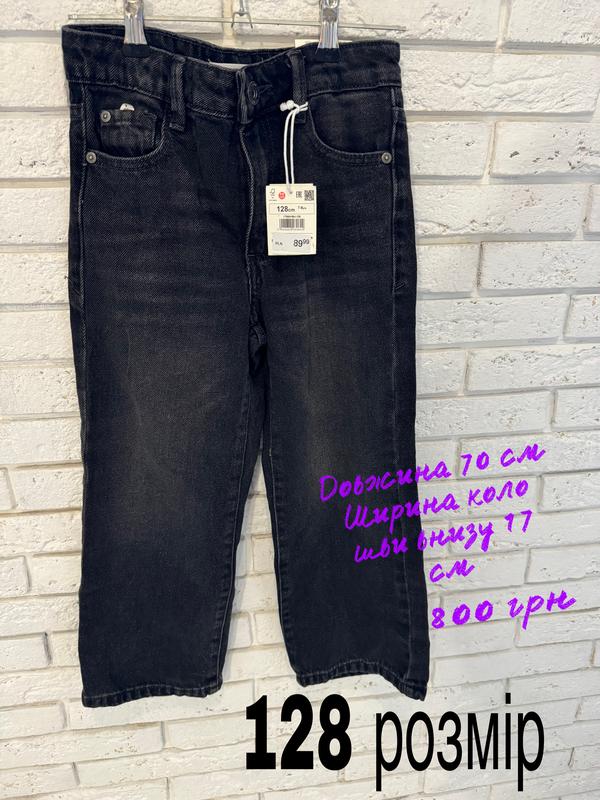 Джинсы 128 размер, длина 70 см, ширина штанины 17 см.