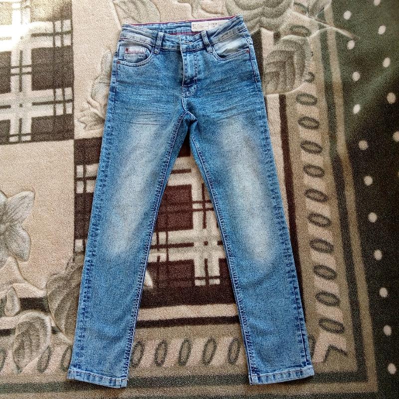 Фирменные джинсы, в новом состоянии, только без этикетки, может один -два раза оседались. У меня балуированный ребенок ( то то не нравится, то это ))). Купили в Италии. Размер 140 см. Прикольные карманы на попе. В поясе могут регулироваться. Длина изделия 83 см длина внутреннего шва 62 см полуюхват в поясе 30 см (присутствует возможность уменьшения)