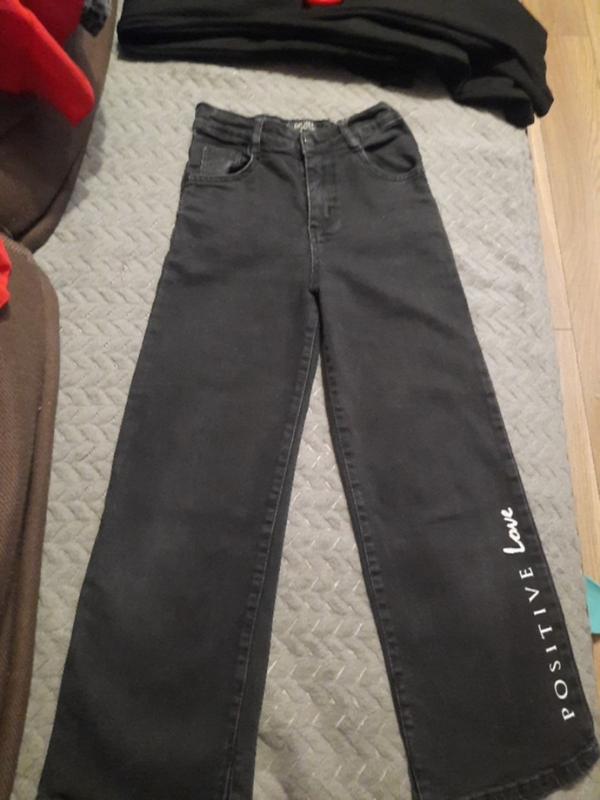 Джинсовые штанишки черного цвета, для девочки, к низу расширены, в очень хорошем состоянии, по качеству просто супер.