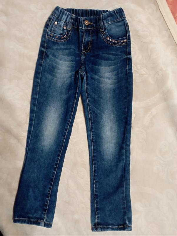 джинсовые брюки в идеальном состоянии одеты два раза просто ребенок не любит носить Джинс купленные дорогостоящие качественный Джинс украшенные камушками пояс на резиночное присутствие Стрейч два передних кармана и два задних кармана без каких-либо нюансов длина 70 см окружность в талии 24 см тянется до 32 см обьем бедер в войну 34 см потягивается шаговый 52 см