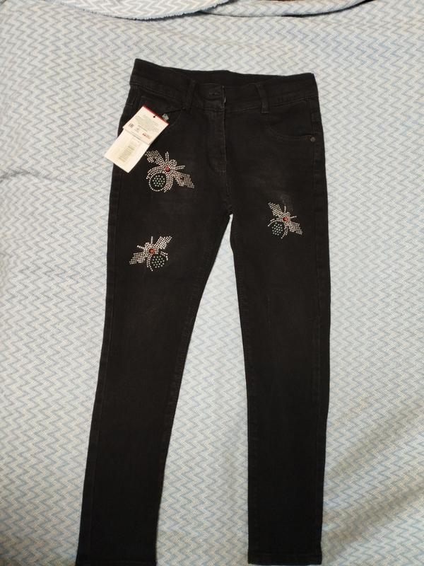 Джинсы штаны для девочки на рост 134 см. очень классные паучки. Джинсы полностью новые, с биркой Замеры: пот 29 см. поб 36 см. длина штанины от талии 78 см. длина внутренней штанины 56 см. ширина штани 11 см.