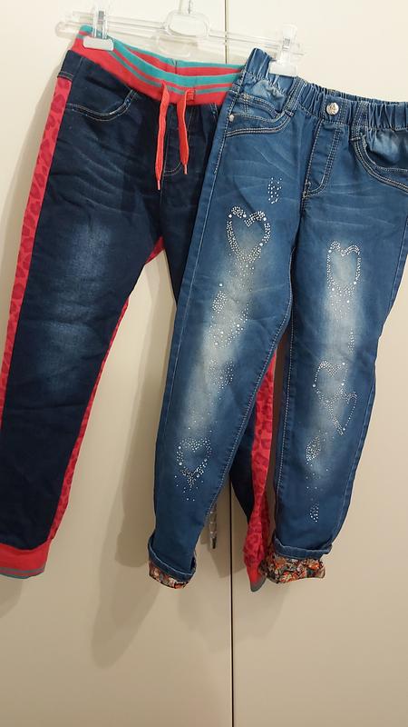 Детские модные джинсы, рост 134-140, 8-10 лет. джинсы темно синий с розовыми вставками пот 30 см, резинка тянется до 34 см, поб 37 см, длина 78 см, джинсы голубые с камешками пот 27 см, поб 35 см, вся длина 80 см, с окантовкой 72 см, все в идеальном состоянии. центная за 1 шт 700 грн