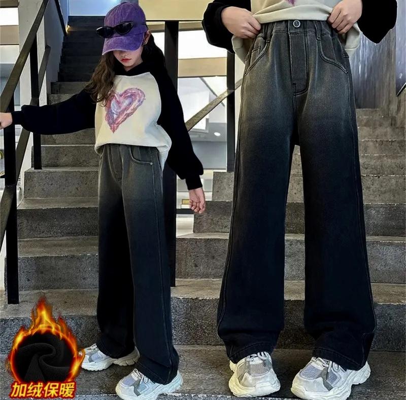 🦄Новинка . Теплые джинсы палаццо для девушек. Отличное качество, насыщенный цвет, рабочие карманы, пояс на резиночке. Тепло и стильно. 🦄Размеры: 140(3шт) 150(5шт) 160(5шт) 170(5шт) 🦄Замеры: 140-Длина 81,шаг 52,пояс 25 см. 150-Длина 86, крок 57,пояс 26 см. 160-Длина 90,шаг 60,пояс 27 см. 170-Длина 94,крок 63,пояс 27 см. Ориентация на замеры, допускается погрешность в 1-2 см. Цена :