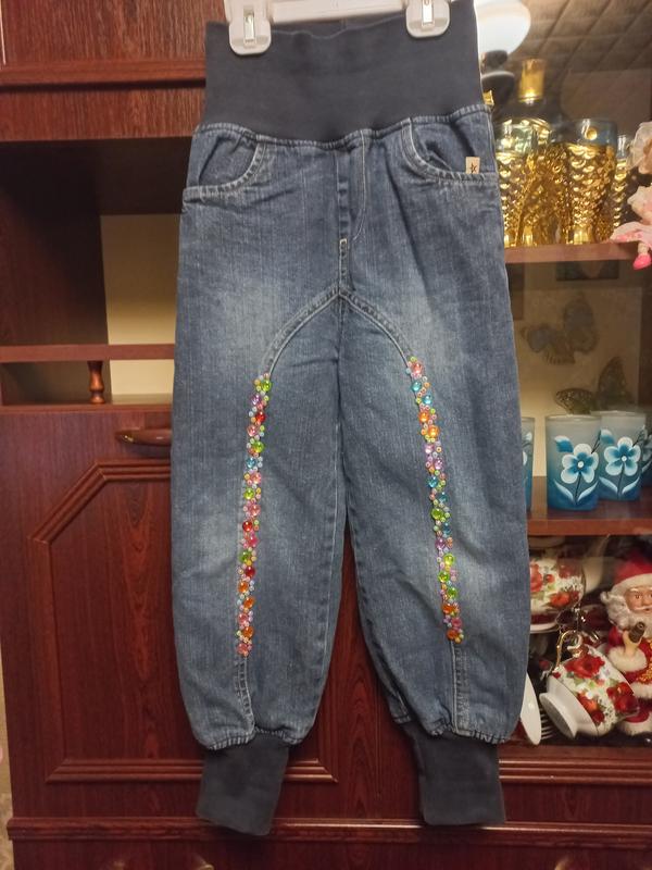 Джинсы на девочку 4-5 лет. Замеры: пояс резинка высокая, посадка с резинкой 29 см тянется до 39 см, шаговый 47,5 см, длина 76 см, внутри подклад. Состояние идеальное, дефектов нет никаких, носятся отлично. Пересылаю Новой и Укрпочтой.