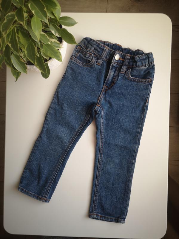 Размер 92. Есть резинка для регулировки объема в талии. На правой штанине, при стирке, слегка смела краску, на фото практически не видно. Ткань не "древесная".