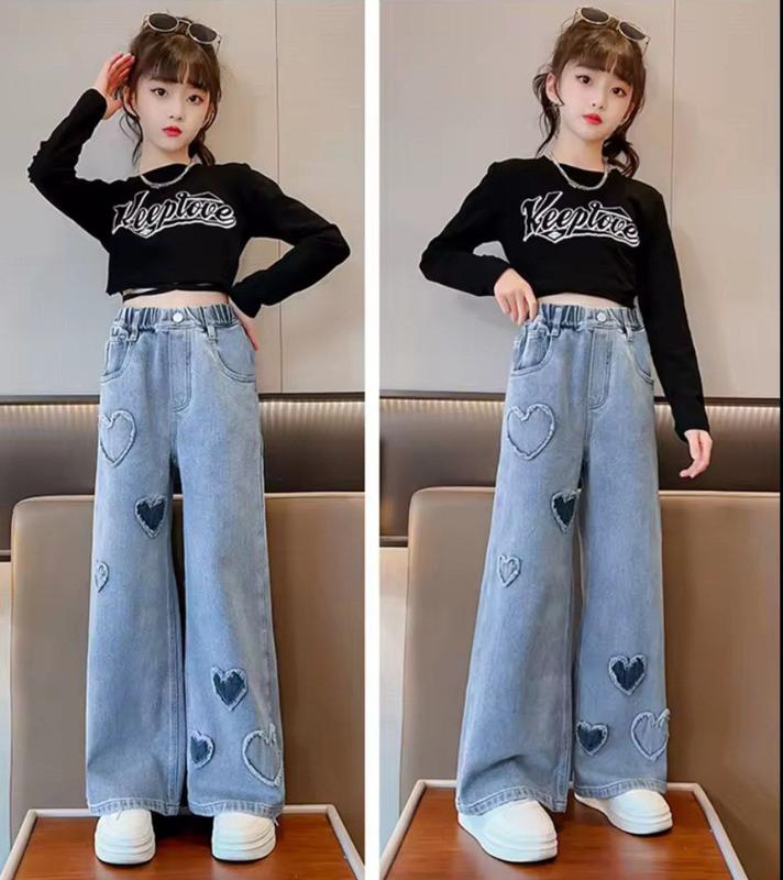 🎯В НАЯВНОСТІ Дроп \опт 780 грн Очень крутые джинсы палаццо для девочек 🖤 Пояс на резинке 🖤 Пуговица украшение 🖤 Сердечка нашивка Замеры 130-Длина 78 см шаг 51 см талия 23*2 см 140-Длина 80 см шаг 52 см талия 23*2 см 150-Длина 83см шаг 55 см талия 23*2 см 160-Длина 88см шаг 58 см талия 23*2 см 170-Длина 92 шаг 63см талия 24*2 см ▪️N-39