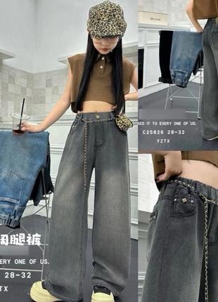 Хитовые джинсы широкая удлиненная модель именно то, что нуждаются в самых требовательных модницах! производитель Китай ткань коттон состречем много карманов В поясе под резинку Цвет серый СУПЕР КАЧЕСТВО! цена 930 грн рост/длина/шак/пот/пос похибка+-2см 134-140/28-2шт 140-146/29-2шт 146-152/30-1шт 152-158/31-1шт 158-164/32-нет