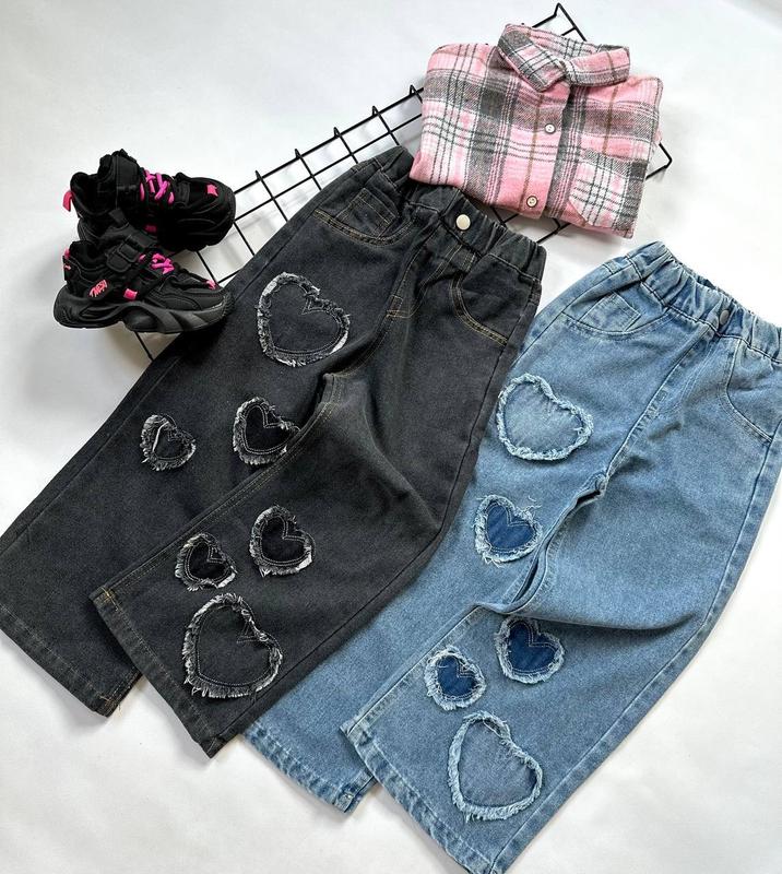 Дуже круті джинси палаццо для дівчаток Пояс на резинці Ґудзик прикраса Сердечка нашивка Виміри 130-Довжина 78 см крок 51 см талія 23*2 см 140-Довжина 80 см крок 52 см талія 23*2 см 150-Довжина 83см крок 55 см талія 23*2 см 160-Довжина 88см крок 58 см талія 23*2 см 170-Довжина 92 крок 63см талія 24*2 см