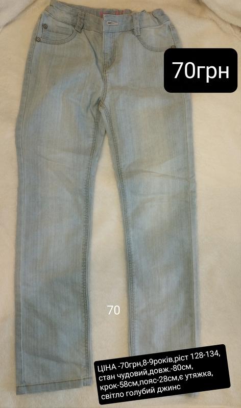 состояние отличное,8-9роков, Рост 128-143,дл.-80см, крок-58см,пояс -28,е утяжка,светло голубый джинс, дополнительные фотодам