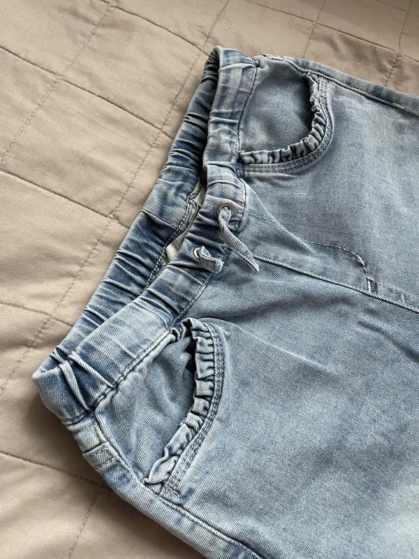 Удобные джинсы светло голубого цвета. Общая длина 74 см Пояс 28 см Крок 50 см
