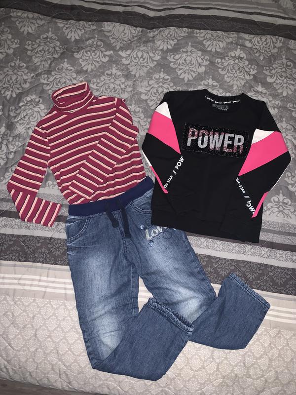 Джинсы на флисе Jeejay Girls рост 116 - 170 грн В идеальном состоянии Замеры Пот на резинке 28 в спокойном состоянии Поб 36 Длина 70/51 Гольфик в рубчик George - 100 грн. Состояние идеальное Замеры Пог 29 Длина 43 рукав 38 Реглан свитшот Divonette - 170 грн. Состояние новой вещи, хлопок Замеры Пог 35 Длина 44 Рукав от горловины 50