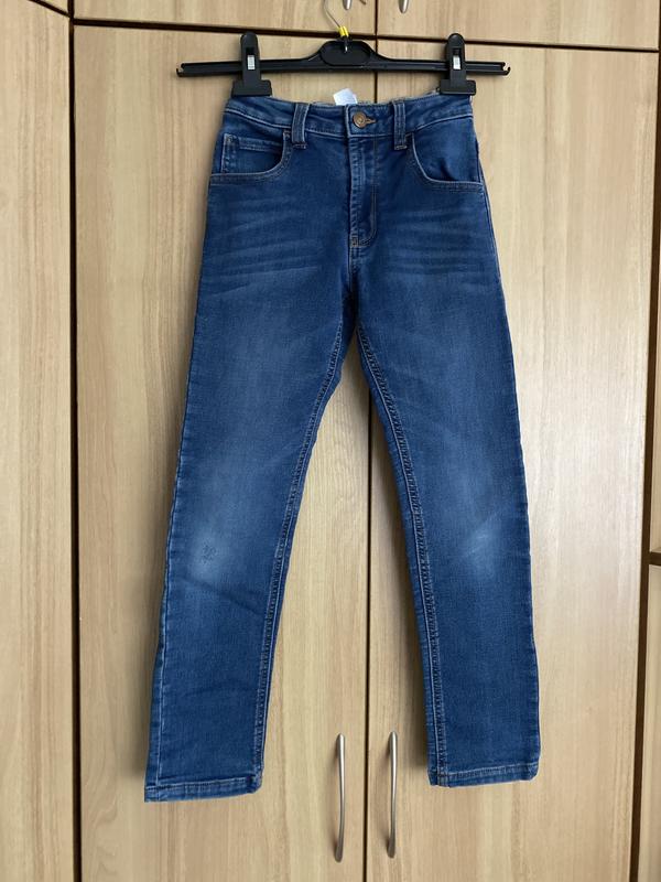 Пояс-26см(позади резинка), бедра-34см, длина по внутреннему шву-56см, длина по боковому шву-78см. Джинс чуточку тянется. Последнее фото-небольшой дефект.