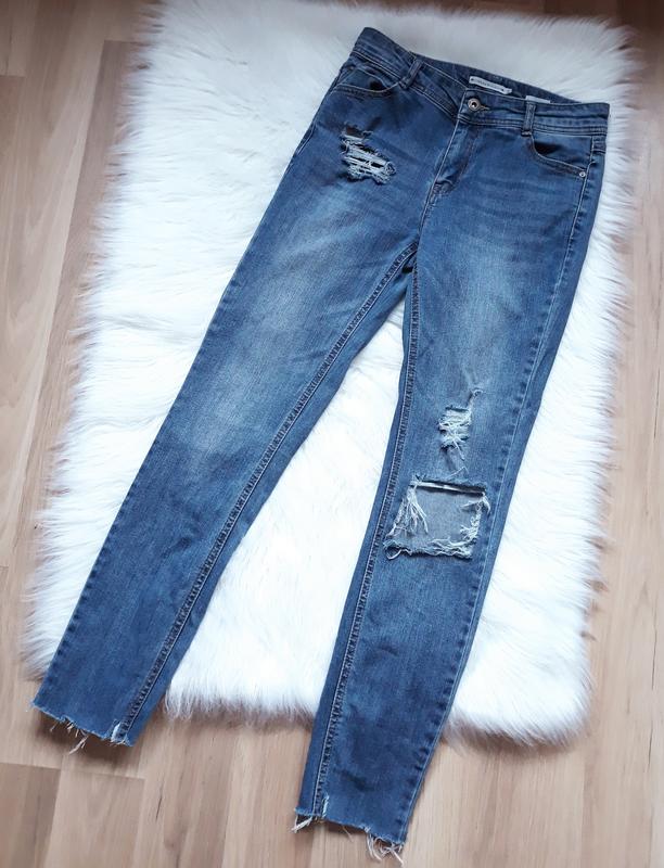 🎈 Замеры пишу к каждой вещи, смотри ниже Укороченные темно-голубые рваные скинни, скинни с дырками и рваным краем Reserved - размер указан XS, но подойдут и на 12 лет (замеры ⬇) - смотрятся очень круто и стильно - джинс качественный, средней плотности, тянется Замеры (сверяй с замерами своих джинс): посадка спереди - 22, сзади - 30 полу-обхват в поясе - 36 ПОБ - 40 длина - 90 шаговый шов - 67 ширина штанины внизу - 12 =========================== Бронь на оплату - 24 часа (не учитывая выходные дни). На подумать брони нет. Обмена и возврата нет. № 0188