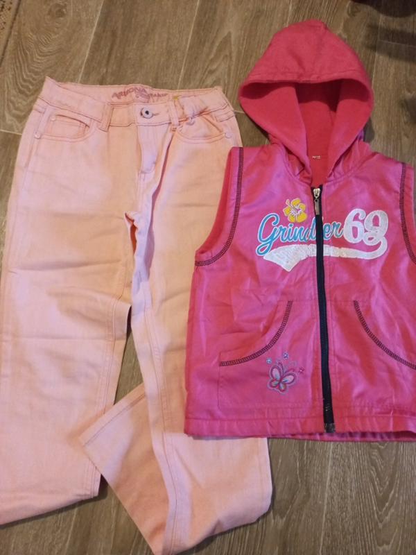 Джинсы и жилетка на девочку 10-12роков. стан идеален, джинсы новые. замеры при необходимости дави, цена за набор