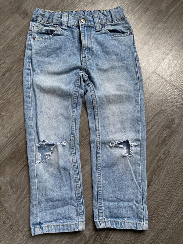 Классирующие джинсы, состояние отличное, размер 110-116. Замеры: внешний шов - 61 см, внутренний - 41 см, полуобхват талии - 27-30 см (регулируется), высота перед/зад - 19/21см