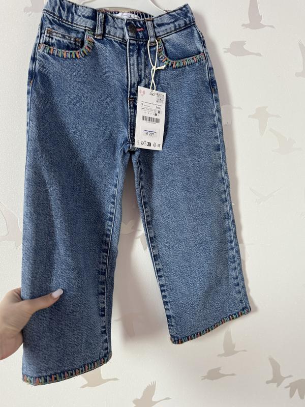 Стильнячі широкі джинси з декоративною вишивкою 110 см , 5 років , довж 57 Дуже красиві вживу , пояс на резиночці, комфортні , чудово сидять на дітках Ціна 670 гривень Irys_irys