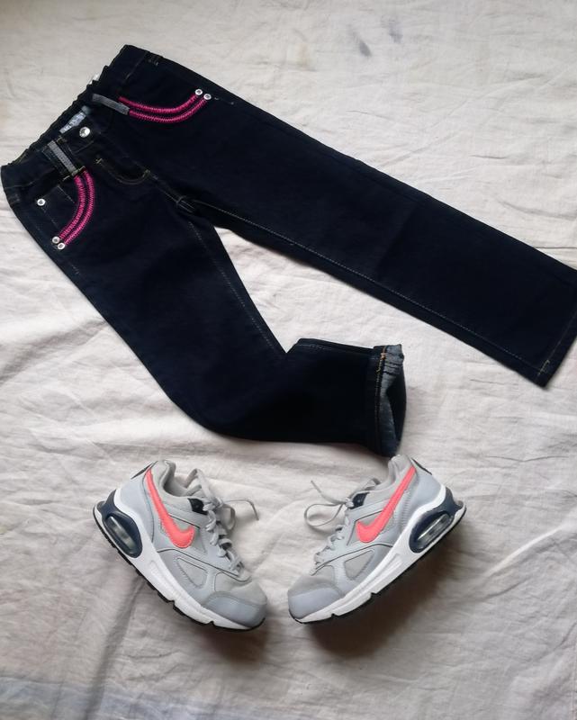Темно синие джинсы стрейч на девочку 5-6 лет. Рост 116 см. Длина 69 см шаг 53 см поб 33 см талия на резинке ( максимально 58 см.)