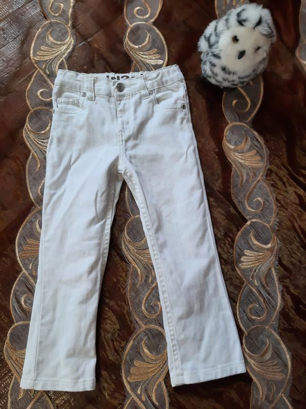 Детские джинсы. Цвет безупречно белый. В поясе вставная резинка. На фото пояс в максимальной ширине.