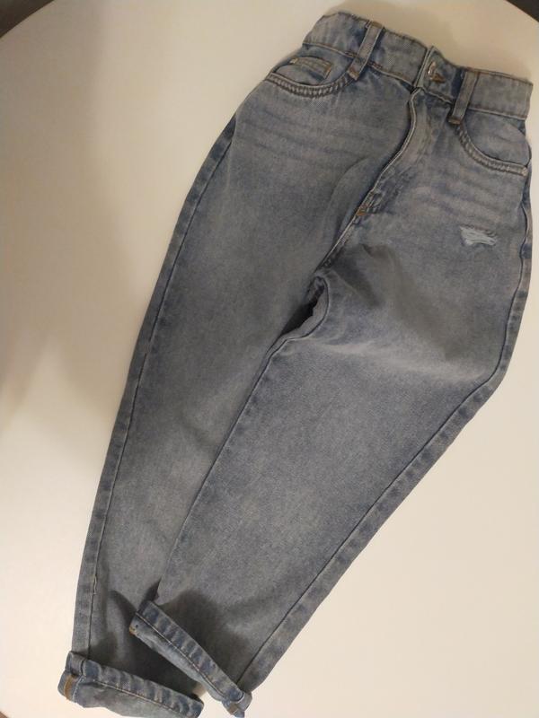 Джинси синього кольору стильні, прямі, треба носити з ремнем,стан ідеальний.Носили в 9 років. Заміри Довжина від пояса 75 см Довжина крокового шву 53 см Ширина пояса 33 см