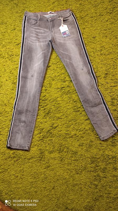 Джинсы рванка состояние новой,е бирка на рост 158-164 см. замеры пояс 36, утяжка резинка.длина 103 см, пошаговый 79 см.