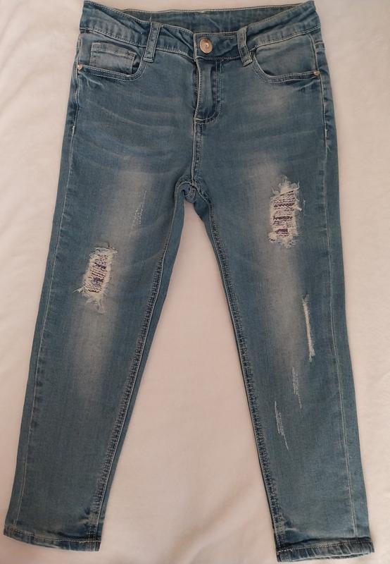 Джинсы на 6-8 лет длина 68см полуобхват бедер 36см пояс стягиваются на резинку
