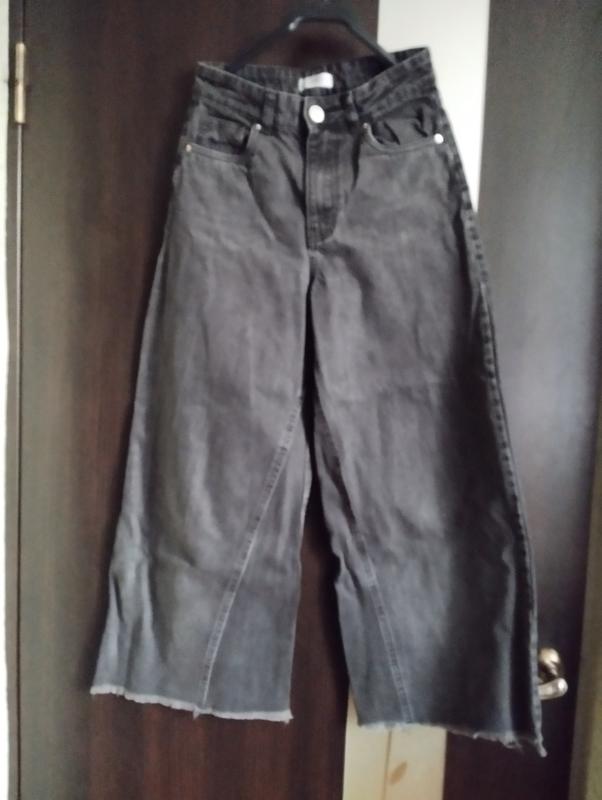 Стильные джинсы широкого кроя. Посадка высокая. Довжина -87 см ., крок -59 см., пояс-33 см.,посадка-27 см., ширина штанини -28 см.