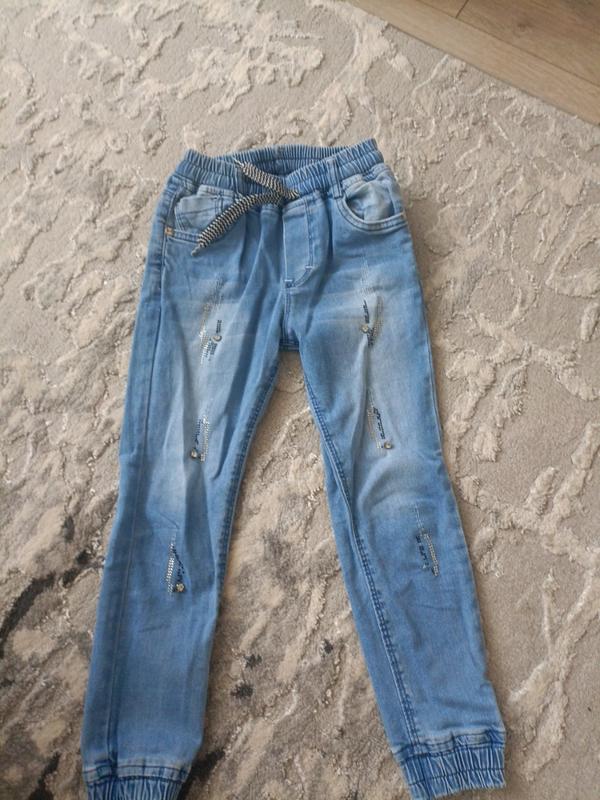 джинсы джоггеры являются небольшим дефектом но его практически не видно, отстала одна бусинка