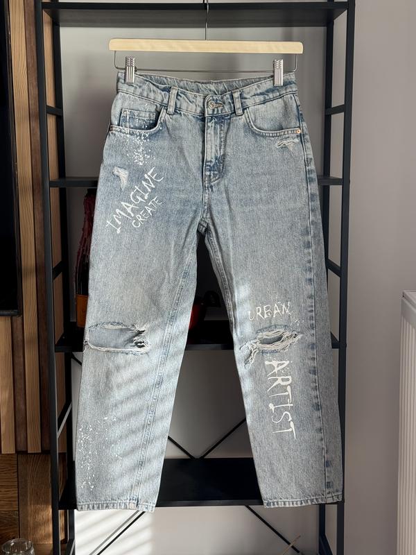 Детские джинсы Zara в идеальном состоянии. На возраст 10роков, 140см рост. Я носила их на рост 155 в виде коротких скинни. Замеры: Длина 84.5см Длина с внутренней стороны 59.5см Полу обхват в талии 33,5см (есть внутренняя скрытая резинка для регулировки талии при необходимости) Полу обхват в бедрах 44см.