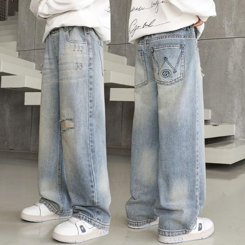 ✔️трендовая модель свободного кроя ✔️универсальные, для парней и девушек ✔️с резинкой на талии ✔️качественный мягкий деним Размеры: 140,150,160,170 см