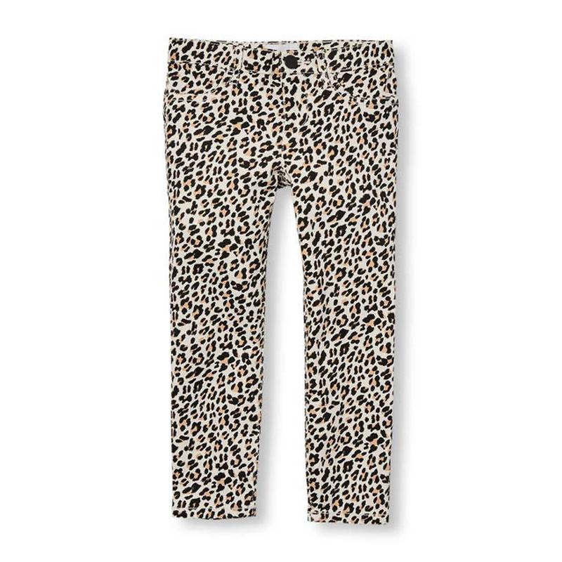 Джеггинсы для девочки с леопардовым принтом, талия регулируется внутренним язычком. Нефункциональные передние карманы, функциональные задние карманы. Очень стильно смотрится с футболкой, регланом. Машинная стирка при 40. 98% cotton/2% спандекс twill Тягнуться. Состояние отлично Длина 62 см ПОТ 26/30 см ПОБ 29/33 см Посадка 17 см Длина шага 45 см