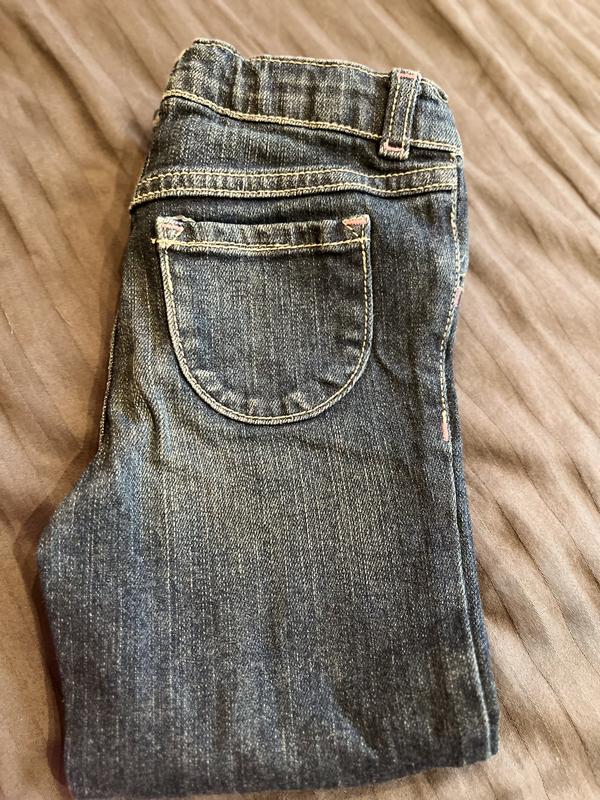джинсы Crazy8 на девочку на 4 года. Модель темно синего цвета. Снизу есть розовые бантики. Пояс регулируется.