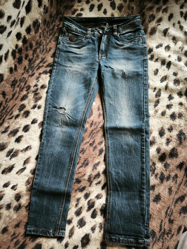 Джинсы на мальчика р. 25, Стан очень красив.. Синего цвета с потертостями, царапинами и дыркой (см. фото). Пояс п/о 37, бедра п/о 44, посадка высокая 24/27, длина 93, ширина штанины п/о 14,5 см.Качество ткани и почтовый очень хорошее.DENIM.