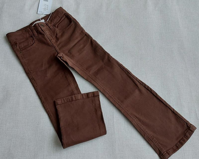 Джинсы клеш на девочку. На поясе есть утяжки для регулировки. Качество очень красивое. Цена-500грн Размер- 128см. Цвет-коричневый Бренд - name it (Дания). Замеры: 128см : довжина-75см, крок-51см, пояс-28см, бедра-29см.