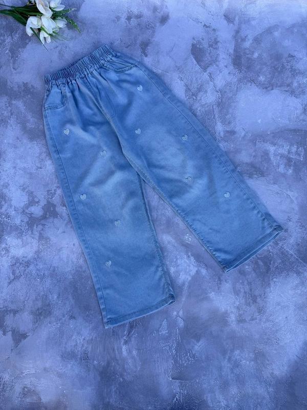 Стильные джинсы клеш для маленькой модницы Тканина тоненький джинс котон! Какие-то хорошие! Пояс на резинке!! 120 р -длина - 68см, шаг - 43 см, пояс - 23 см 130 р - длина - 74 см, шаг - 47 см, пояс - 26 см 150 р - длина - 82 см, шаг - 55 см, пояс - 28 см