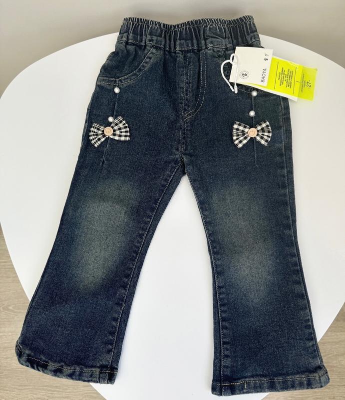 Стильные джинсы для девочки👍🏻 Пояс на резинке,на попе есть карманы. Очень круто смотрятся на детках 😍 Хорошее качество и практичный дизайн 💥👍🏻 80/м - длина 49 см, крок 30 см, бедра 28 см(3 шт) 90/L - длина 51 см, крок 31 см, бедра 29 см(3 шт) 100/XL - длина 54 см, крок 33 см, бедра 30 см(3 шт) 110/XXL - длина 57 см, крок 35 см, бедра 31 см(3 шт) 120/3XL - длина 60 см, крок 38 см, бедра 32 см(3 шт)