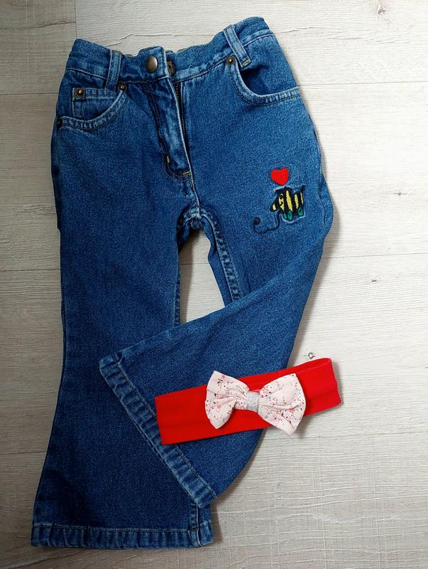 Джинсы клеш для девочек 2х лет (92) Состояние отлично Замер: Длина джинсов 53 см Полуобхват 22 см(пояс резинка,пуговица) Крок 33 см Дополнительное фото и замеры снаряжения Повязка в подарок Отправка каждого дня