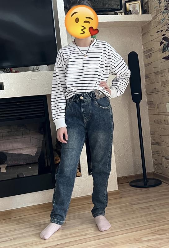 Джинсы для девочки. Качество супер! Мягкие, средней плотности. Цвет фото не передает насыщенный. Прямые, более к момам. На резиночке, сидят круто. Купували за 1500 грн . Ребенки выросла, одела 1-2 раза.