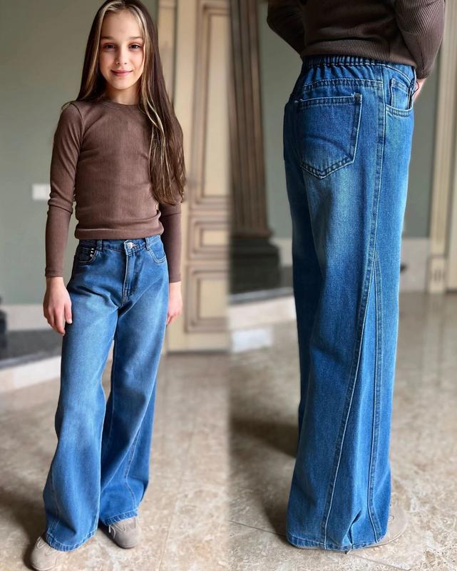 Крутезные джинсы-палаццо с защелками Супер качественный Джинс-коттон! Есть молния и по спинке резинка Производитель: Турция Цена: 995грн Замеры: длина/шак/бедра/пояс 12(152) - 87/65/37/28 13(158) - 90/68/38/29 14(164) - 92/70/39/30 15(170) - 93/72/40/31 ▪️N-8T