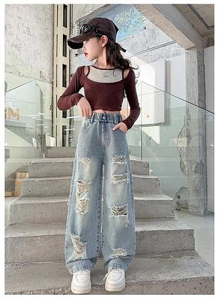 Новинка 2025 Стильные рваные джинсы для девочки Пояс на резинке, сзади есть карманы. Очень круто выглядят 😍 130 - довжина - 76 см,крок- 50 см, бедра 38 см. 150 - довжина - 86 см,крок- 59 см, бедра 42 см. 160 - довжина - 91 см,крок- 63 см, бедра 44 см. 170 - довжина - 97 см,крок- 67 см, бедра 45 см.